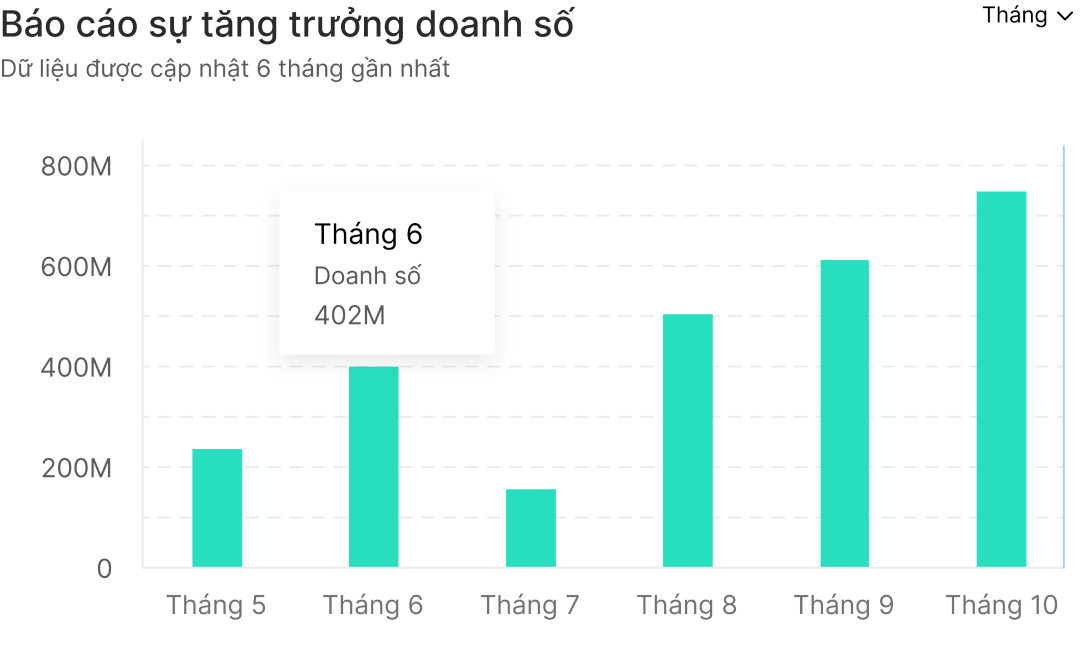 • Biểu đồ báo cáo sự tăng trưởng doanh số