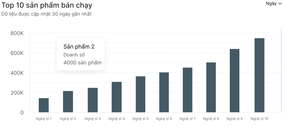 • Biểu đồ báo cáo top 10 sản phẩm bán chạy