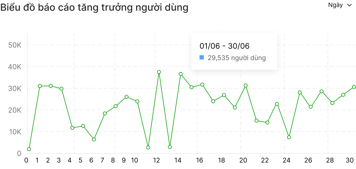 • Biểu đồ báo cáo tăng trưởng người dùng
